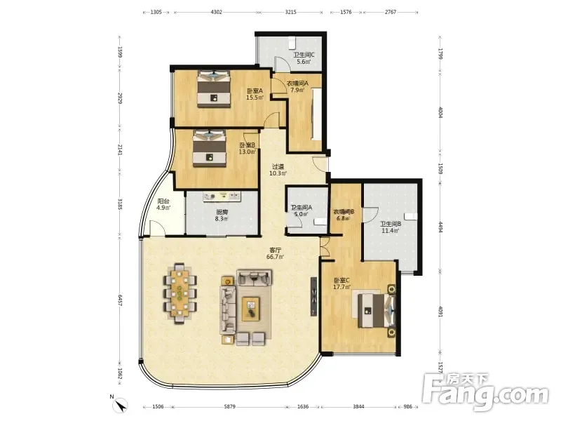 房屋拥有相对宽松的尺寸,布局通透,动静分离,设计豪华