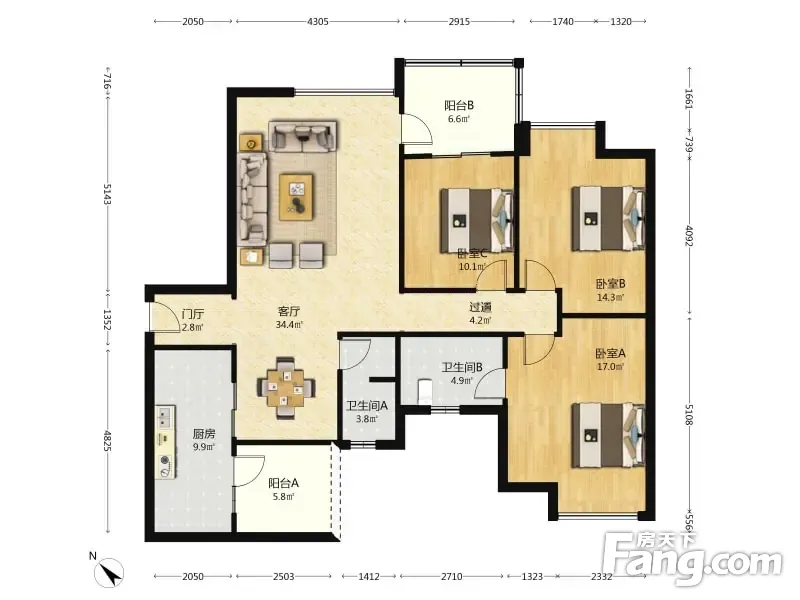房屋拥有相对宽松的尺寸,布局通透,动静分离,设计豪华