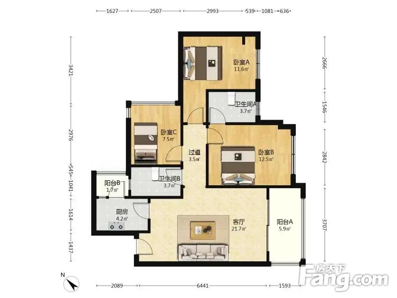 户型齐全,主打明卫,客厅朝南,双阳台三居