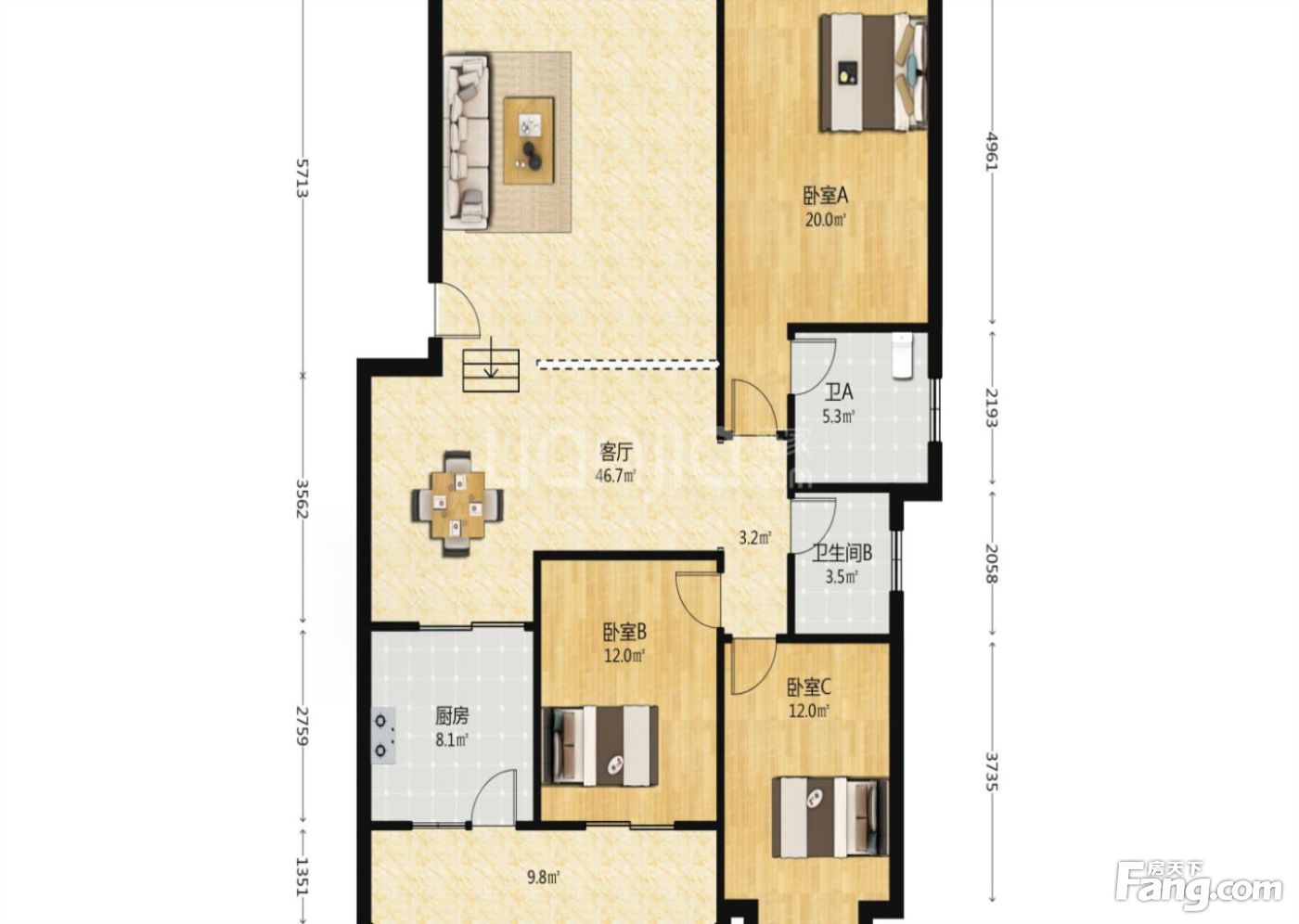 户型齐全,主打明卫,客厅朝南三居