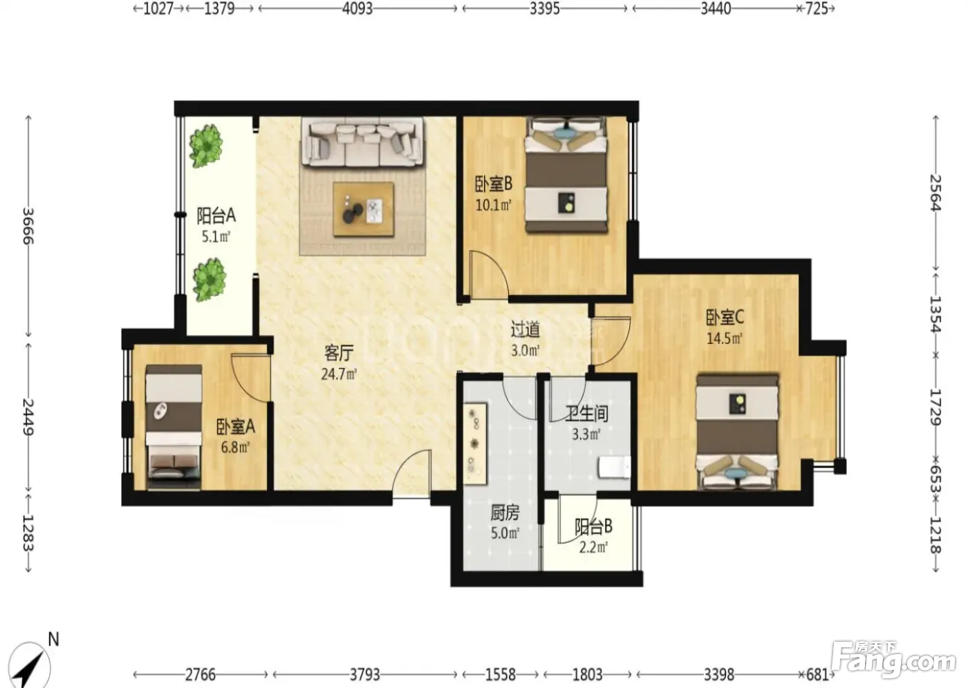时代花城三期 3室2厅 西南