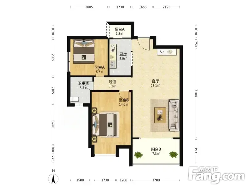 2室2厅1卫