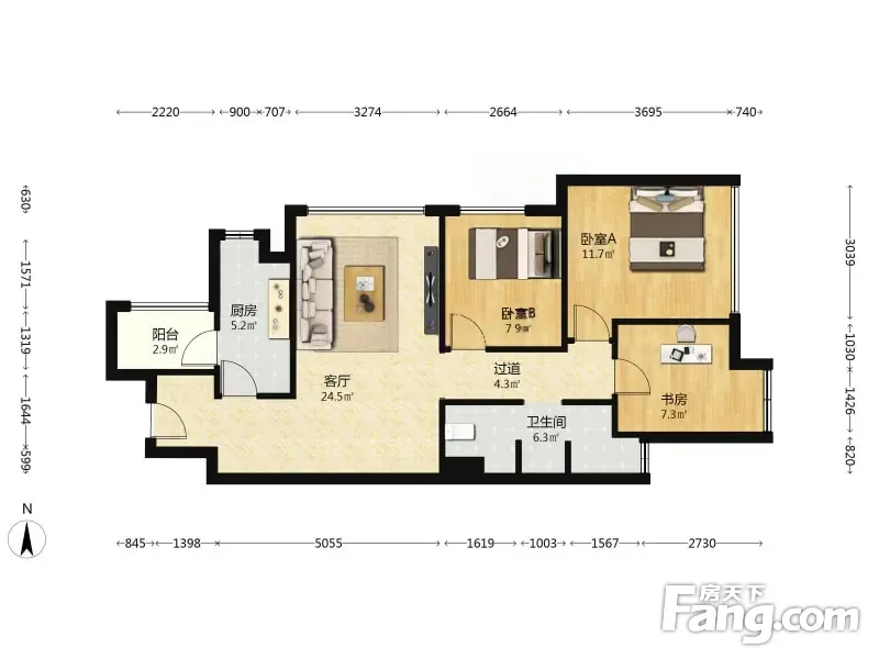 户型齐全,主打明厨,明卫,客厅朝南,全明格局三居