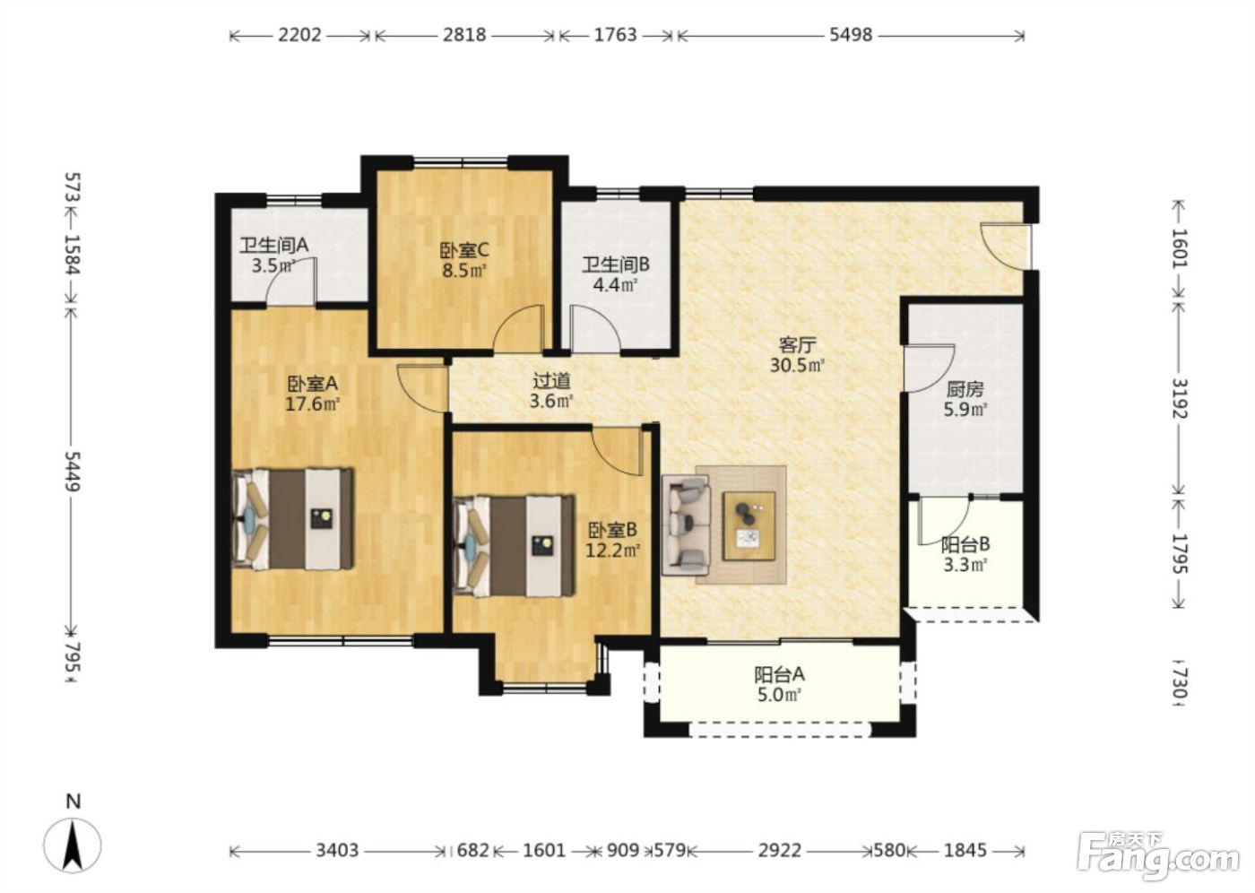 户型齐全,主打明卫,客厅朝南,双阳台,双卧朝南三居