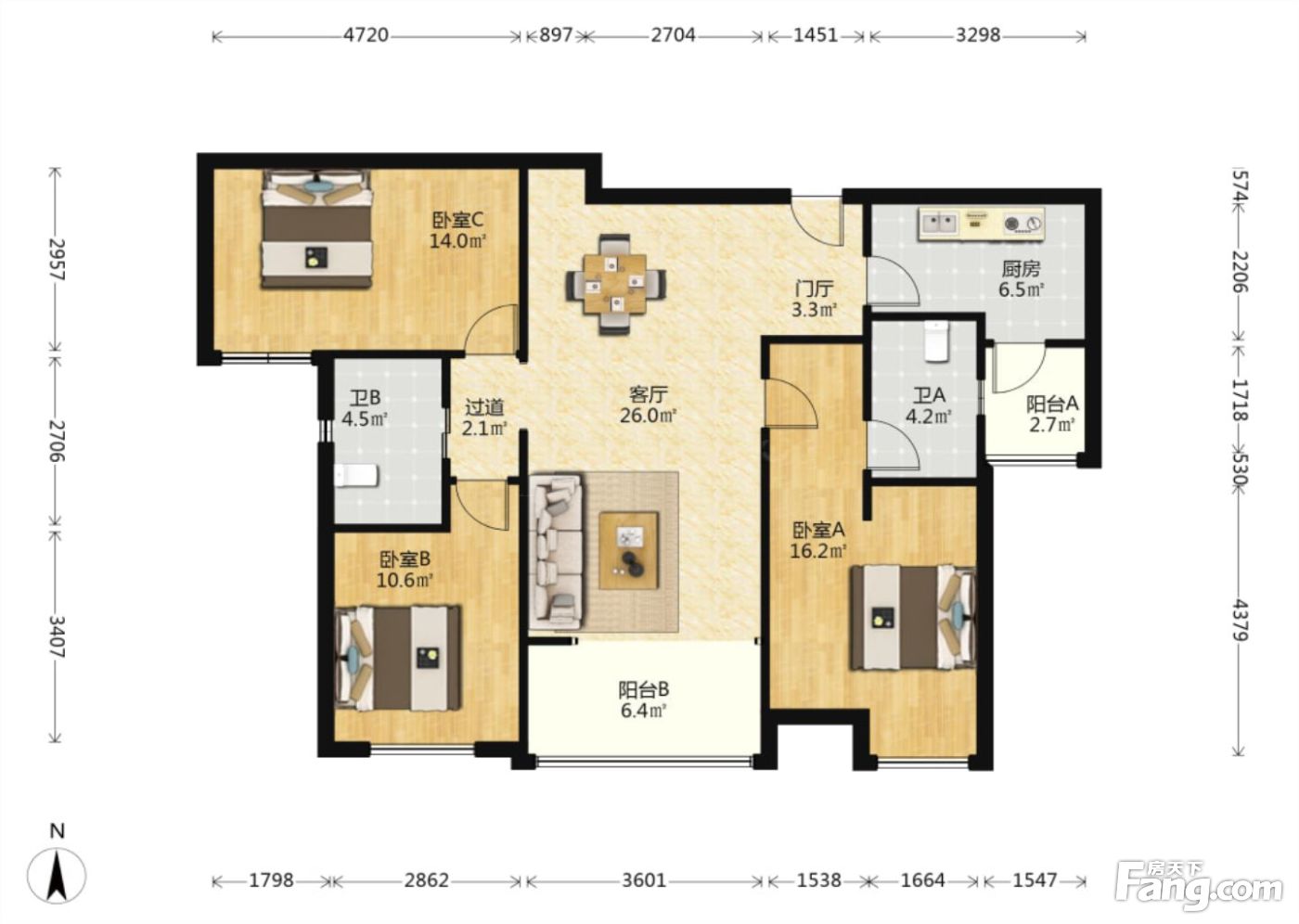 户型齐全,主打户型方正,主卧带卫,大面宽阳台四居