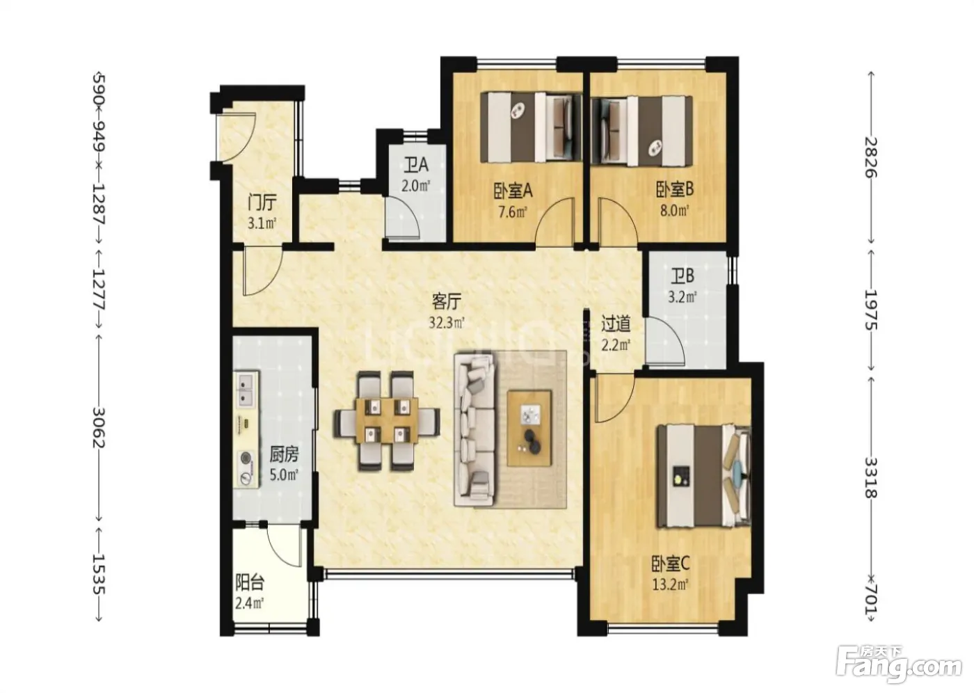 3室2厅1卫