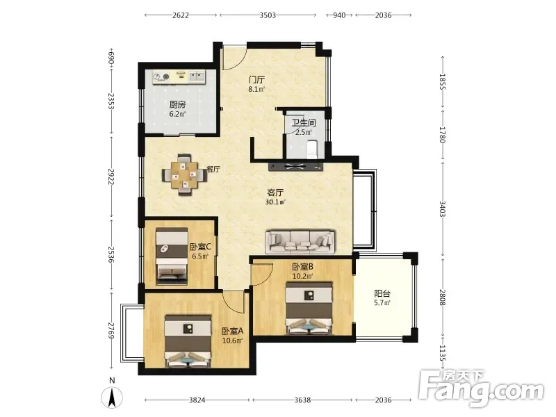 户型齐全,主打明卫,客厅朝南三居