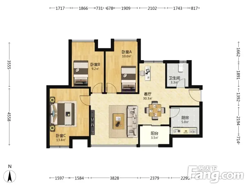 3室2厅1卫