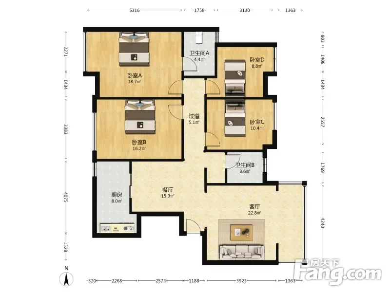 润扬金沙30度 4室2厅 130.49平