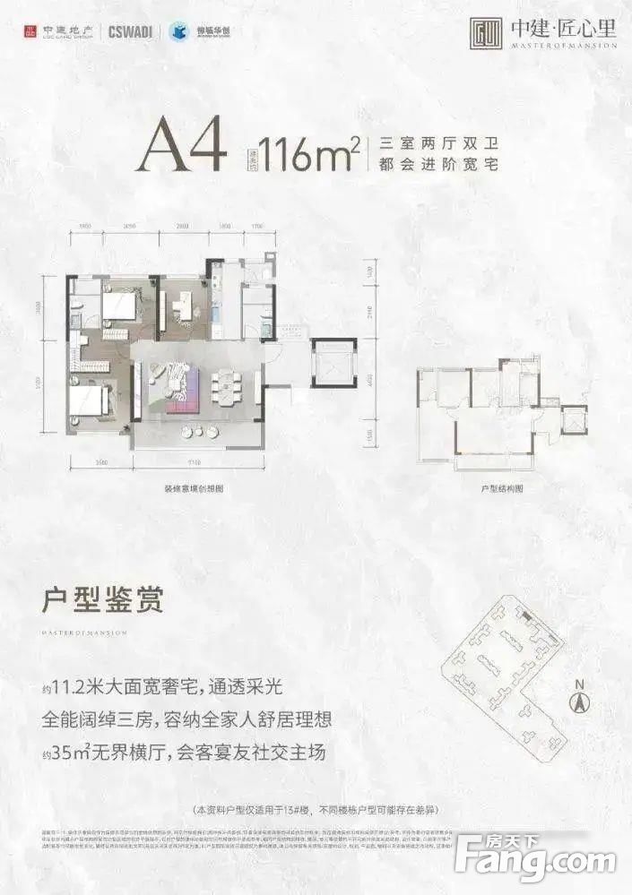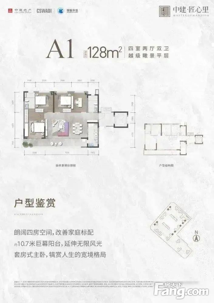 中建·匠心里户型主要有116平-116平的南北通透,主卧带卫的三居 、128平-128平的南北通透,主卧带卫,开放厨房的四居 。