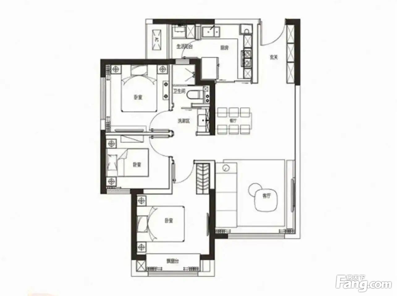 户型齐全,主打户型方正,明厨明卫,干湿分离三居