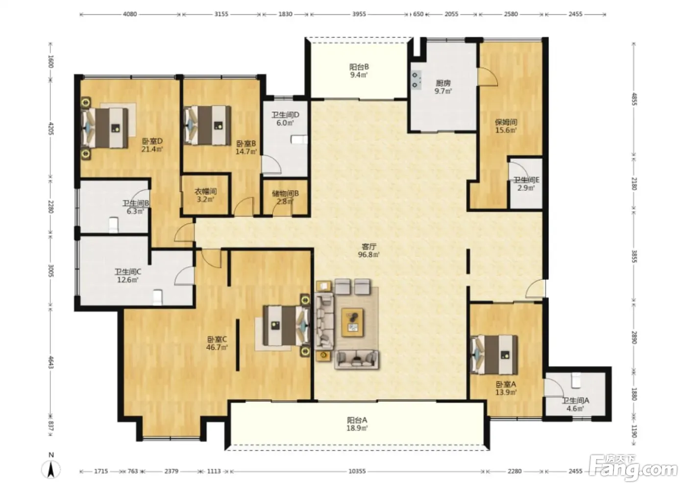 户型齐全,主打南北通透,主卧带卫,带衣帽间,双阳台,餐客分离四居