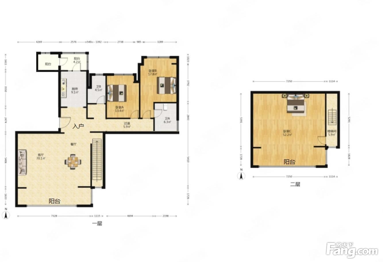 一梯一户,清水大复式!实得190平!南北通透!双车位
