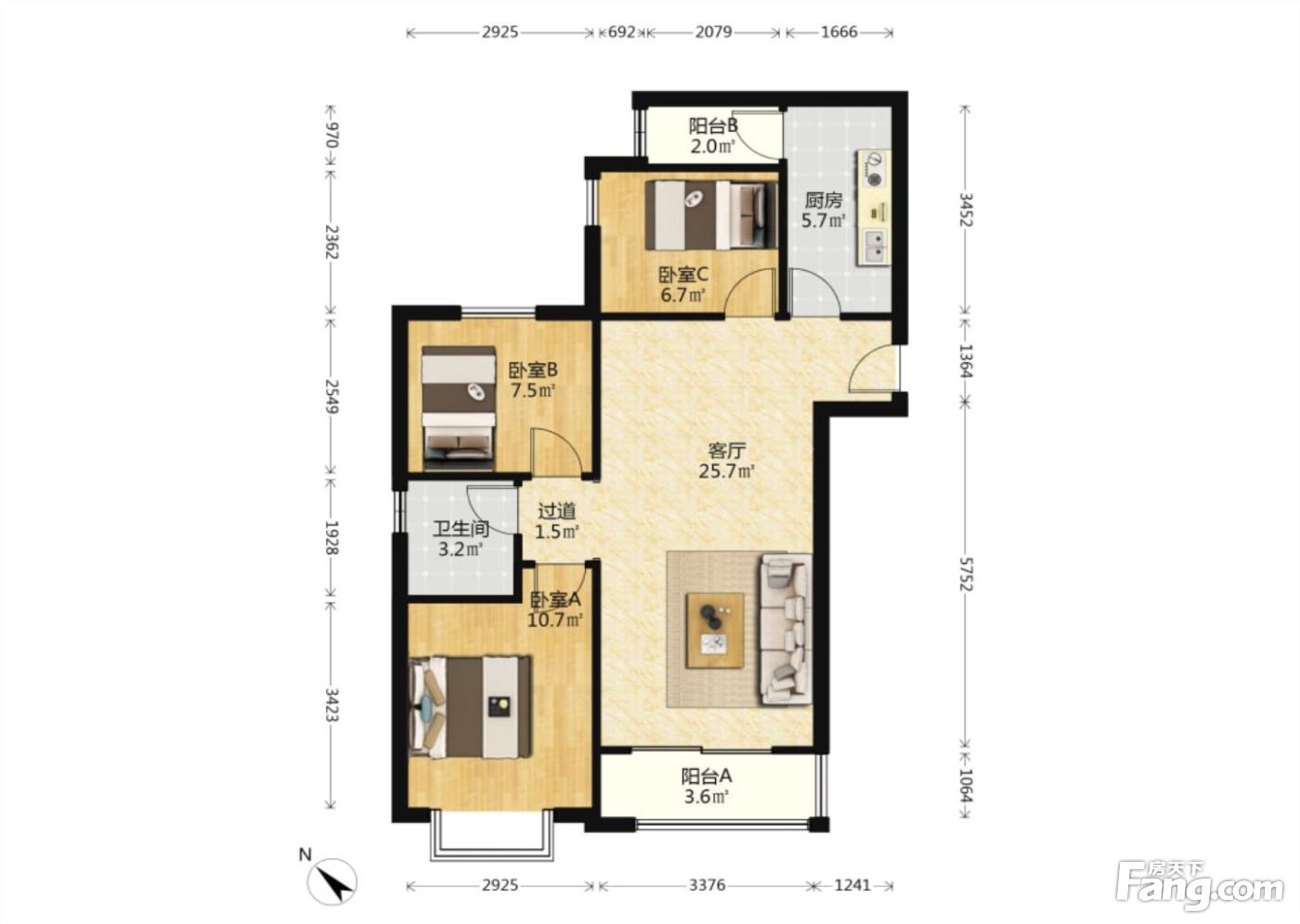 户型齐全,主打明卫,双阳台三居