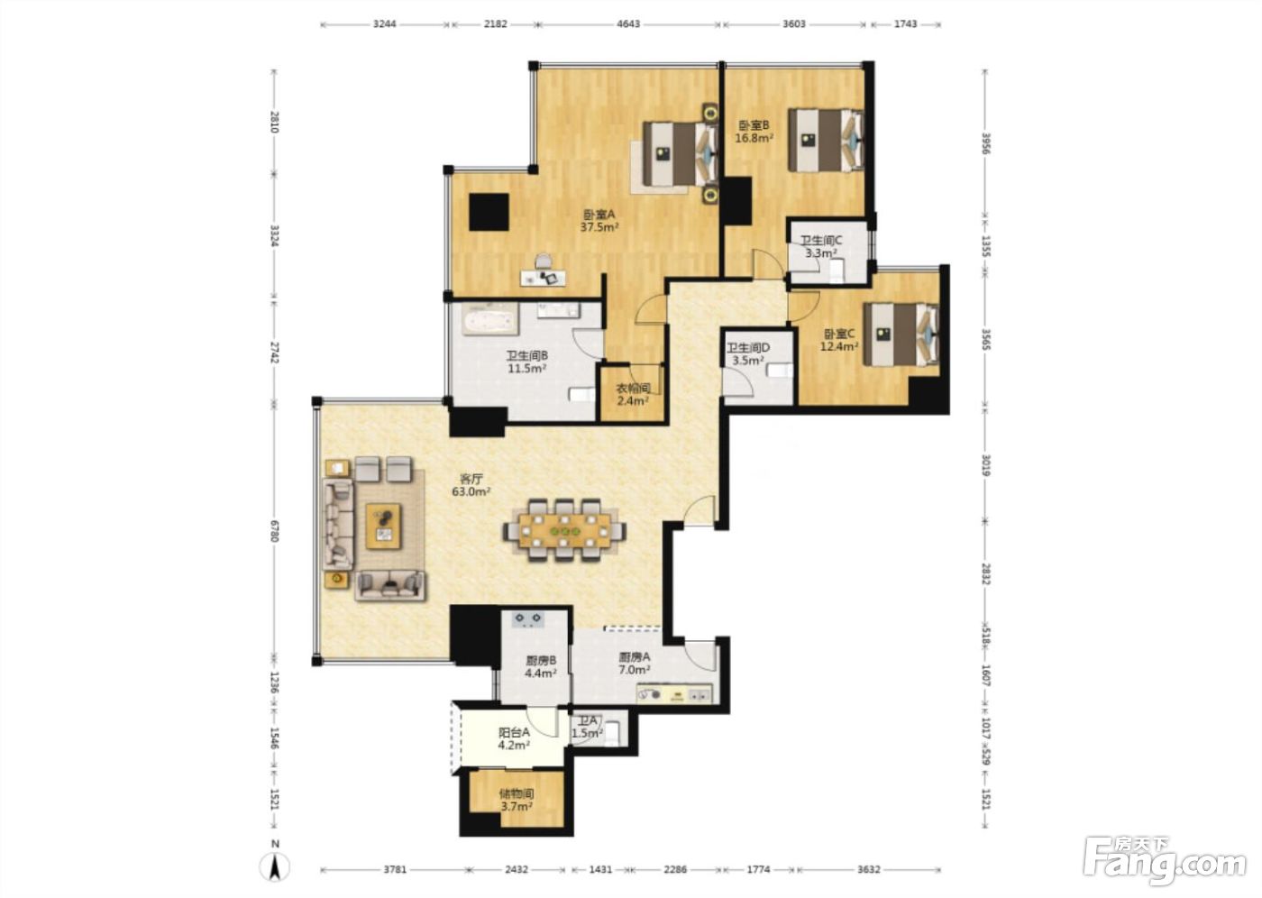 朗御户型主要有85平-389平的明卫,明厨,客厅朝南,全明格局的一居 、183平-226平的明卫,独立衣帽间,客厅朝南的三居 、225平-225平的主卧带卫,带衣帽间的四居 。