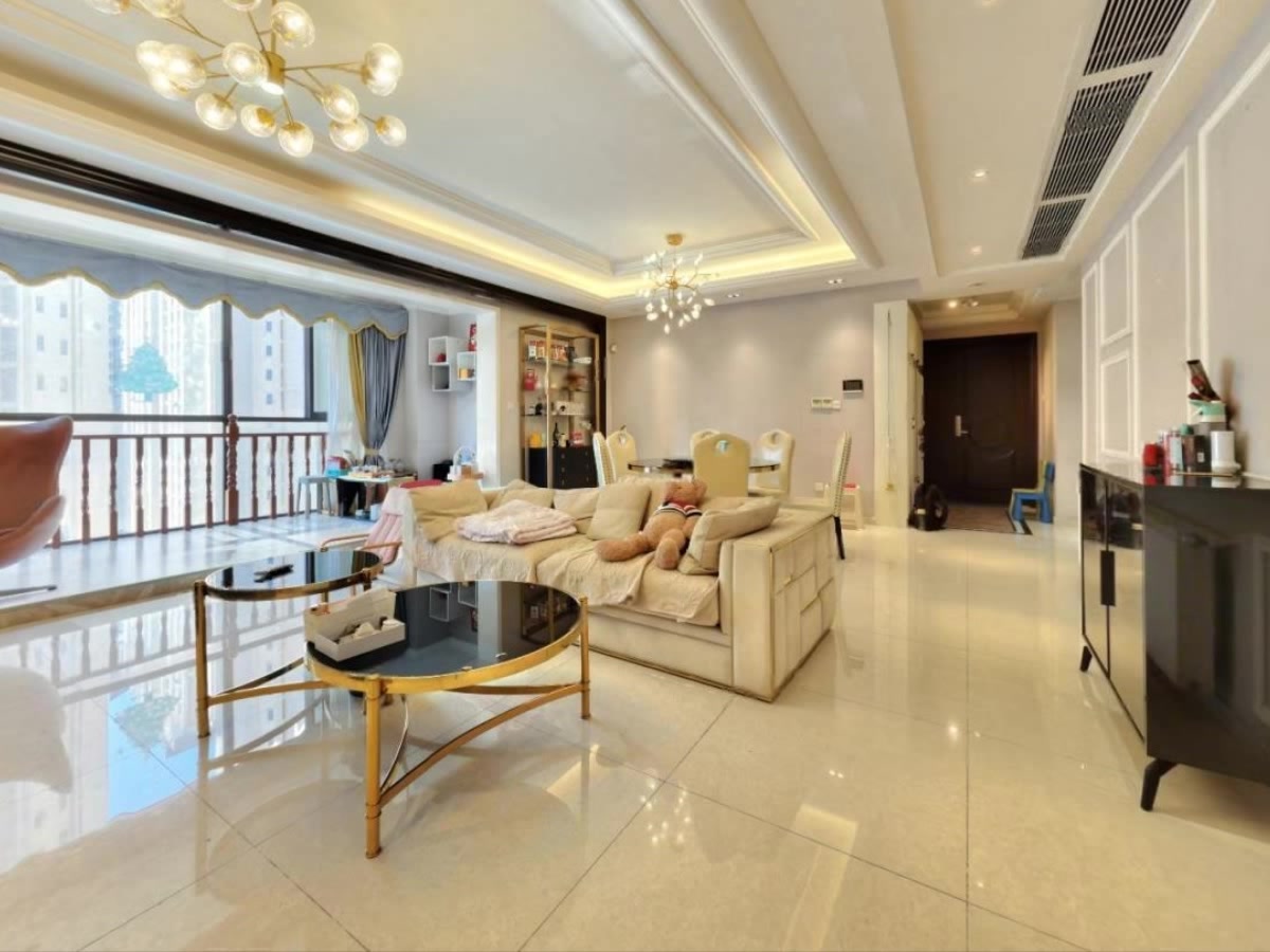 横厅套四,中间楼层,对中庭,安静不吵 该小区建于2015年-2019年,共4批次交付。小区物业为广州宁俊物业管理有限公司物,管理成熟,物业费为4.6元平米月,人车分流,刷卡进入,保安24值守。小区很大,居住舒适,有地下停车场。小区自带游泳池、健身房、羽毛球场等 此房所在楼栋是二梯三户板楼,四室二厅一厨双卫,户型格局方正规整,横厅带8.5平米阳台,方便实用,明厨明卫,通风采光好