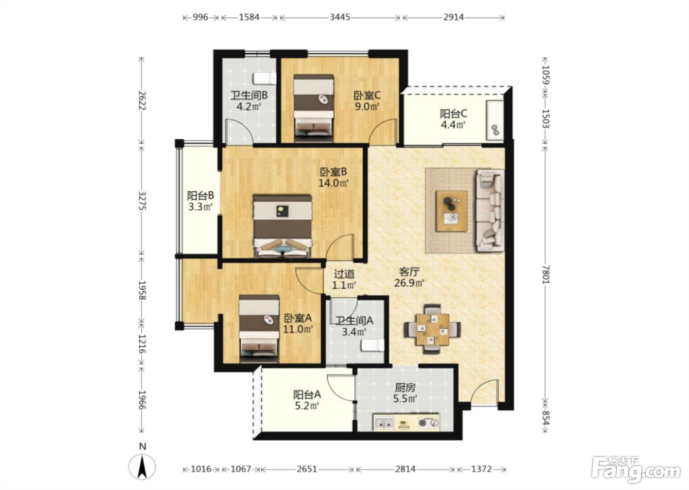 3室2厅1卫