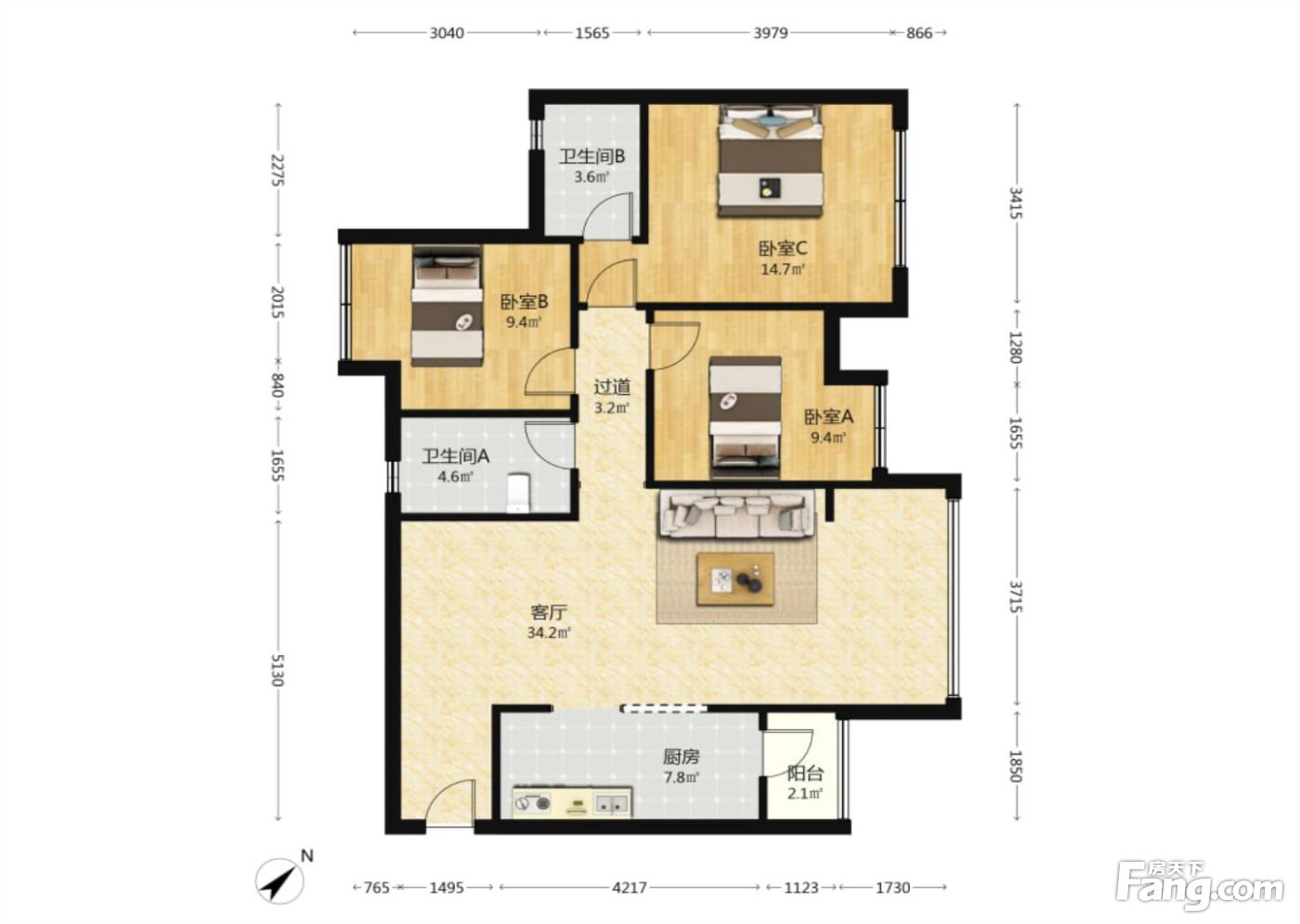 3室2厅1卫