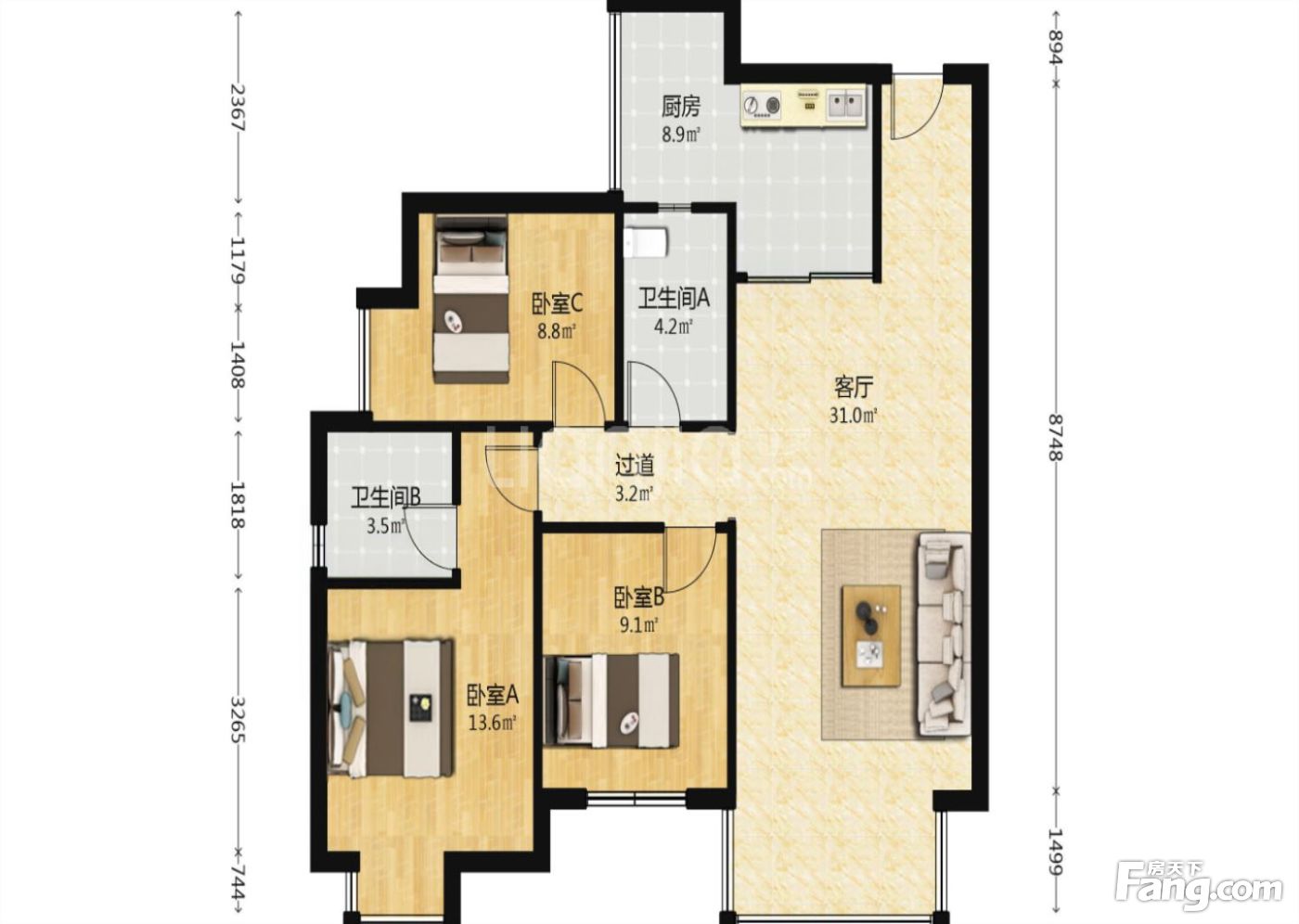3室2厅1卫