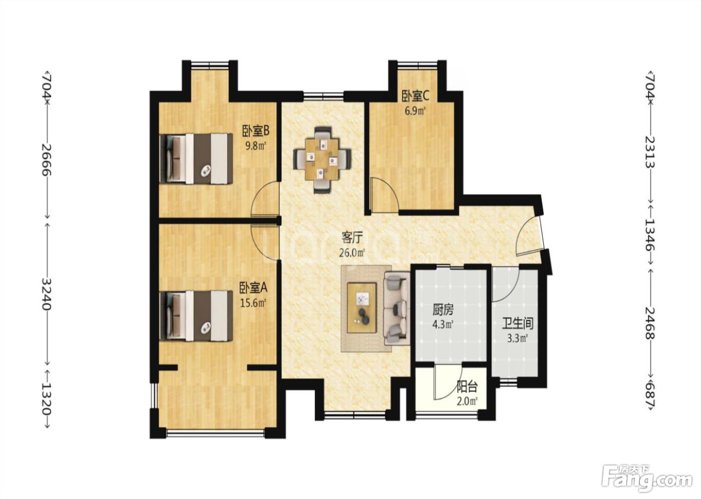 户型齐全,主打明卫,客厅朝南三居