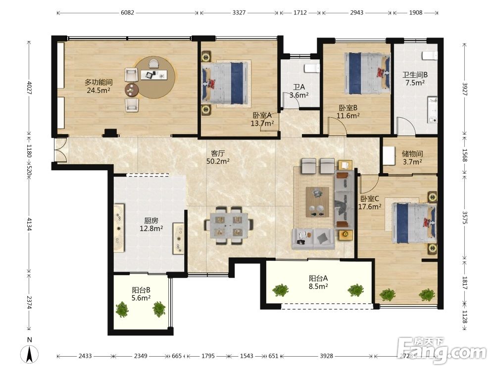 户型齐全,主打明卫,独立衣帽间,明厨,双阳台三居