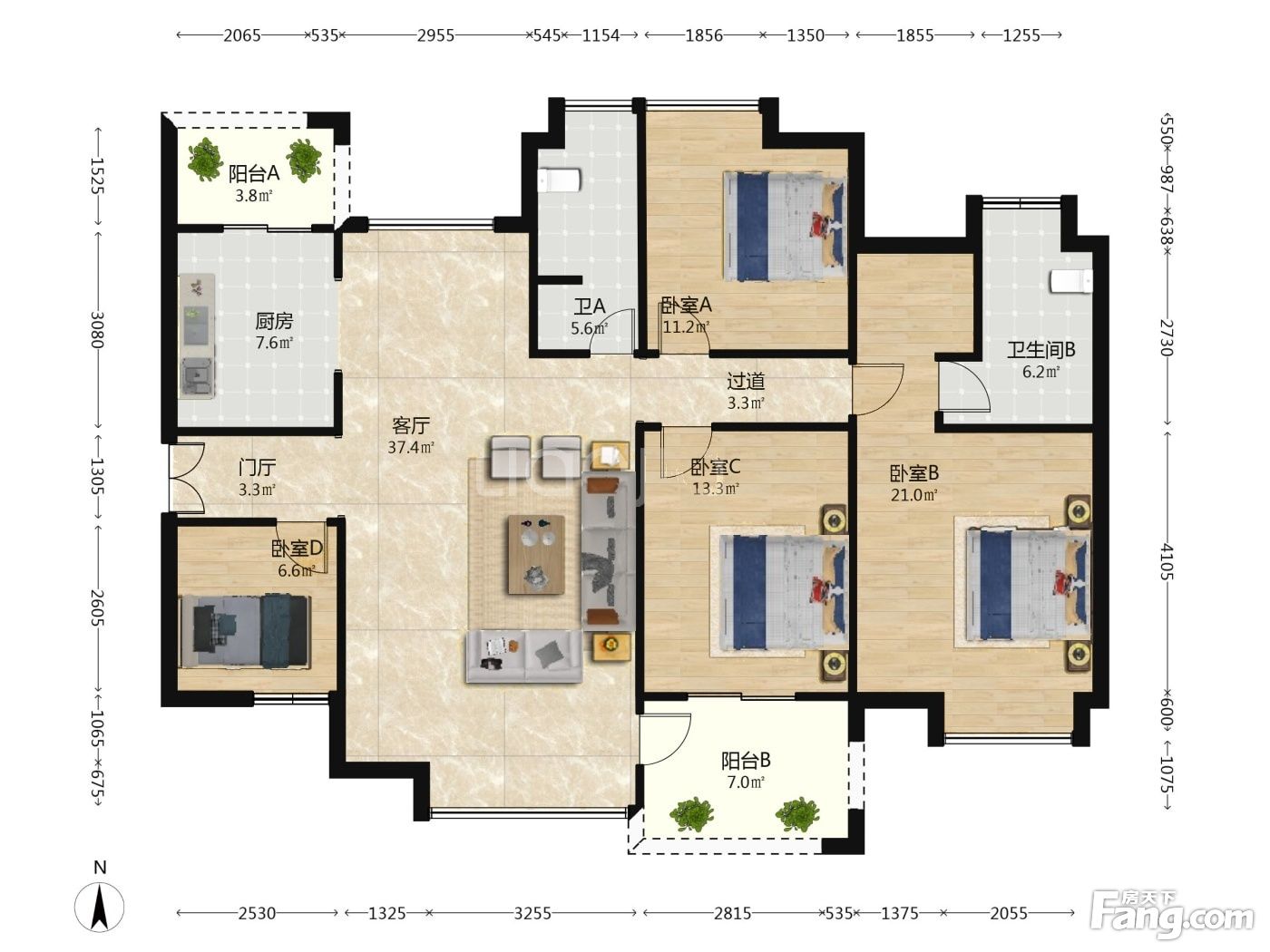 户型齐全,主打明卫,客厅朝南,双阳台四居