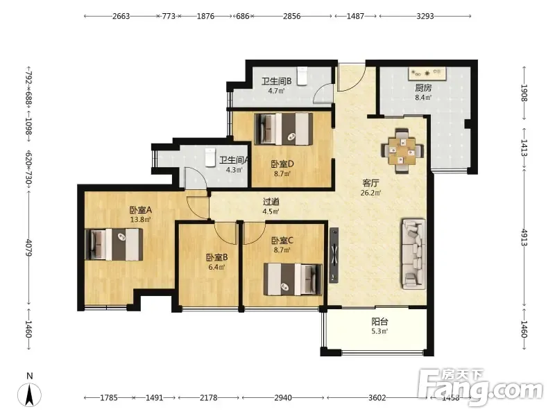 房屋拥有相对宽松的尺寸,布局通透,动静分离,设计豪华