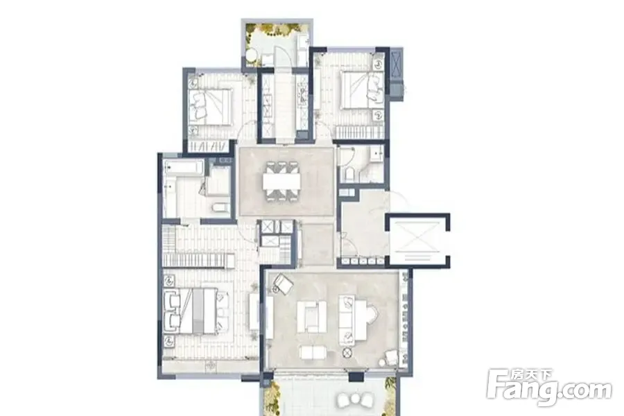 东原印长江户型主要有161平-161平的主卧带卫,大面宽阳台的三居 、178平-233平的户型方正,干湿分离的四居 。