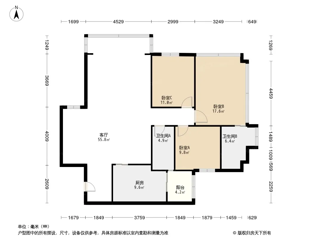 户型齐全,主打户型方正,客厅朝南,主卧朝南三居