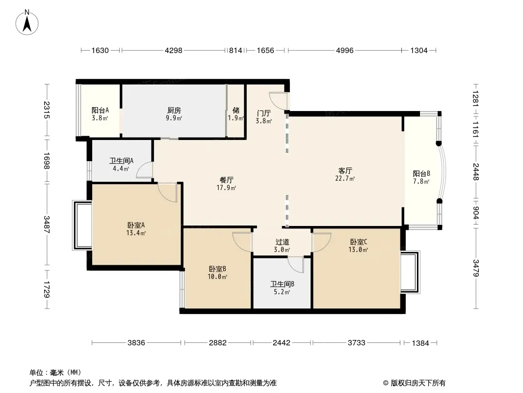 户型齐全,主打户型方正,明厨,明卫,主卧朝南三居