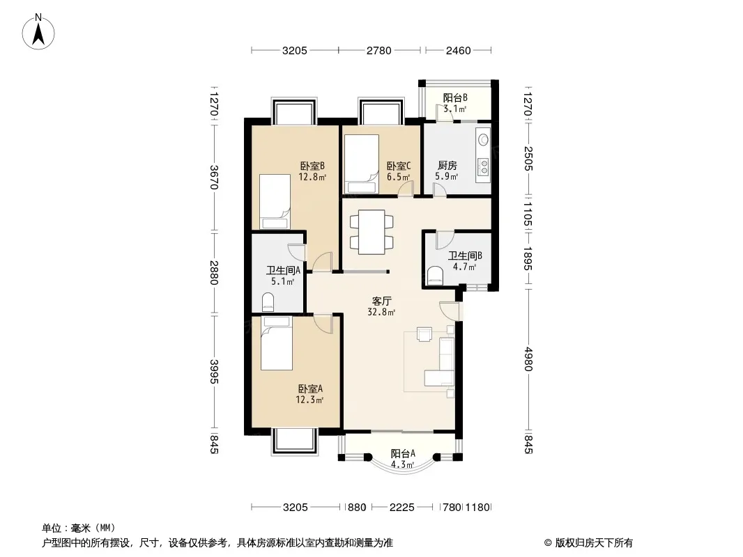 户型齐全,主打明厨,明卫三居