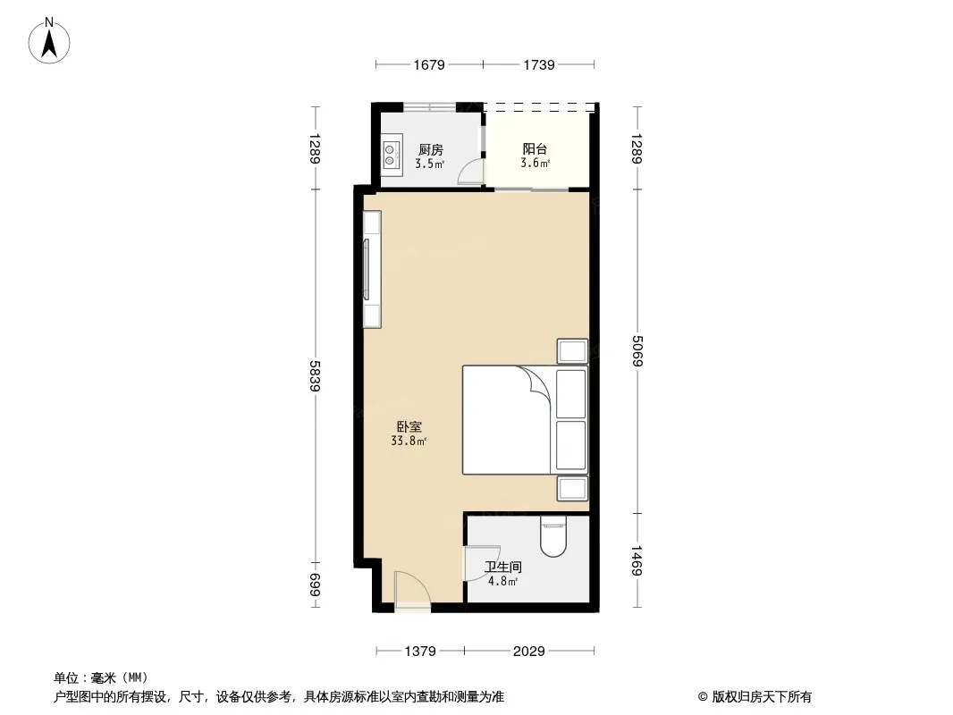 华尔兹广场(武侯) 1室0厅 北