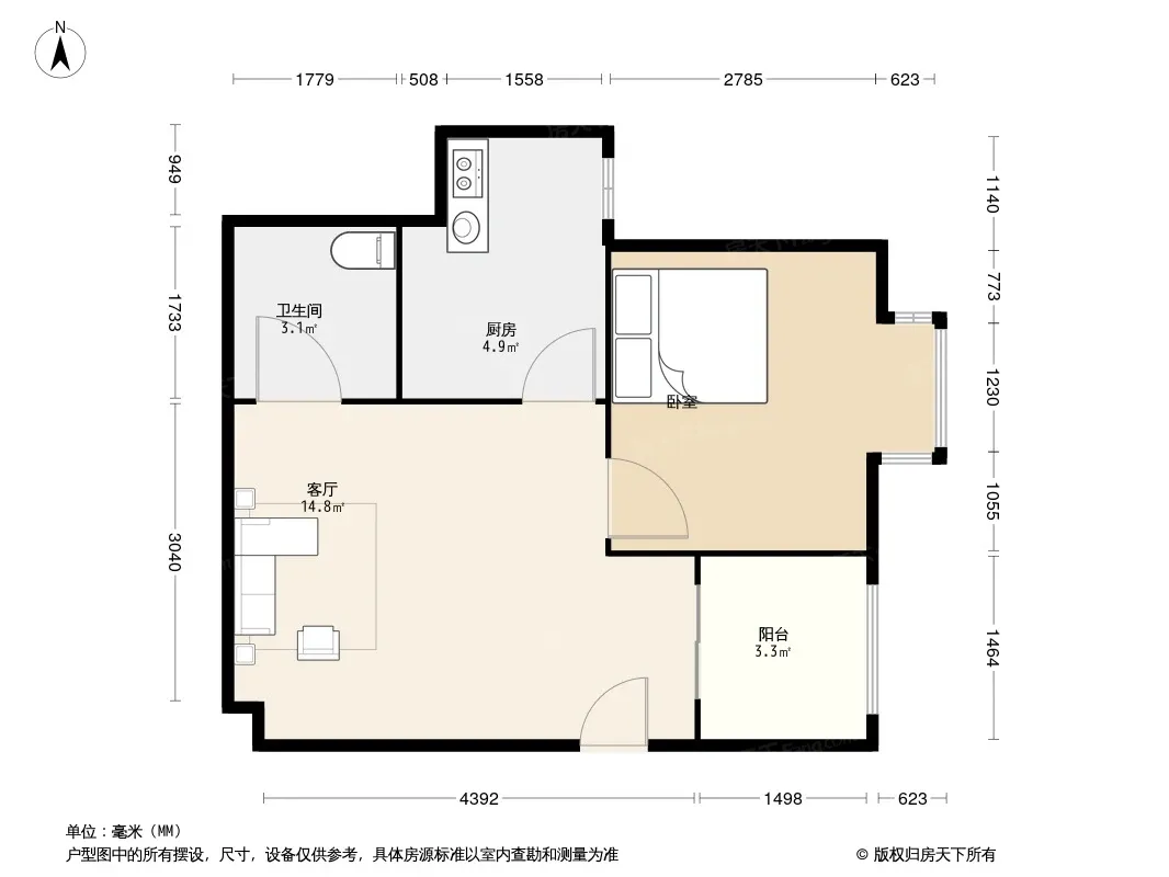 户型齐全,主打明厨,客厅朝南二居