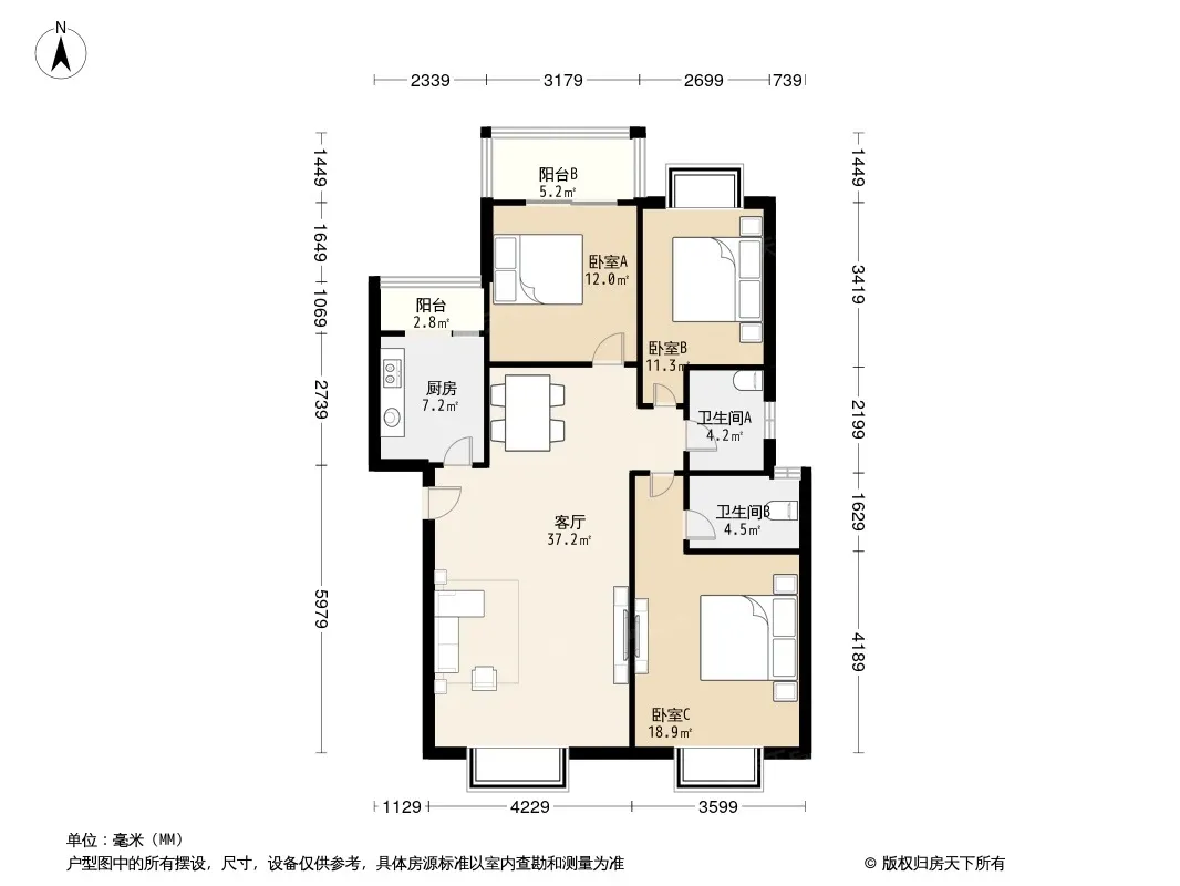 户型齐全,主打户型方正,明厨,明卫,客厅朝南三居