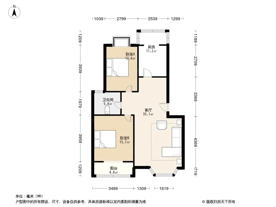 恋日家园E区 2室1厅 南 北