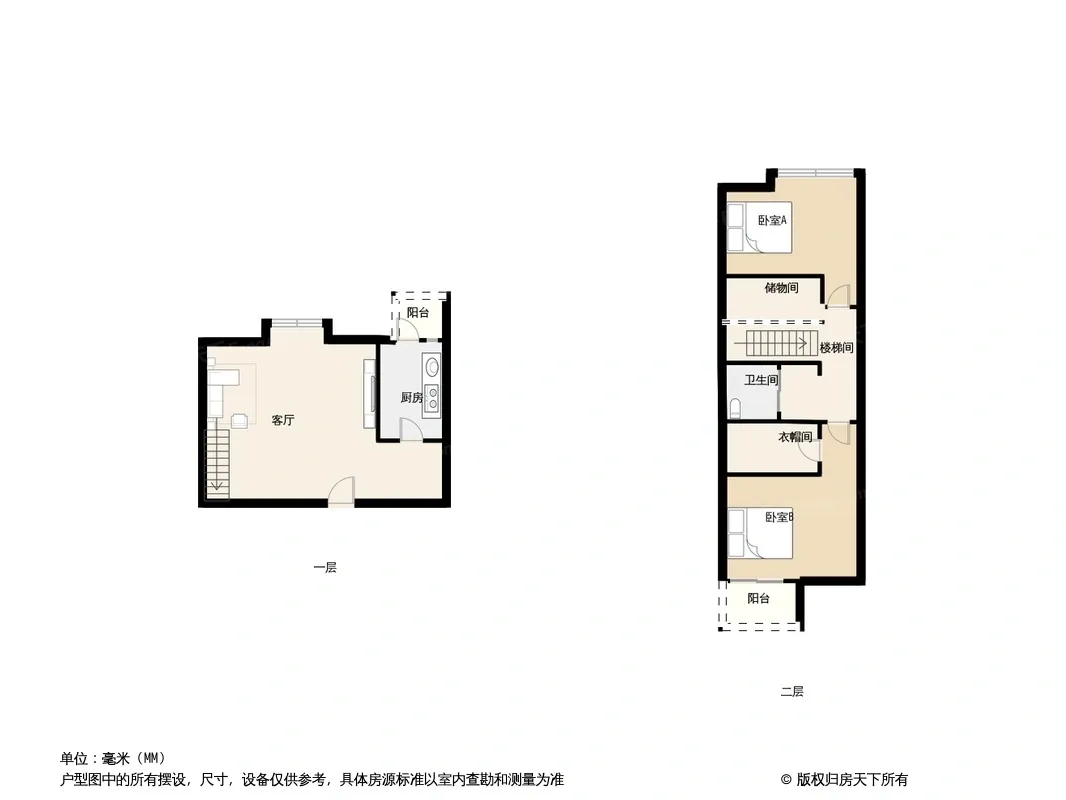 户型齐全,主打明厨,客厅朝南,独立衣帽间二居