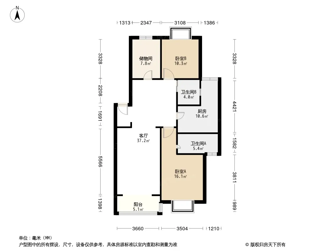 北港新城 3室1厅 南