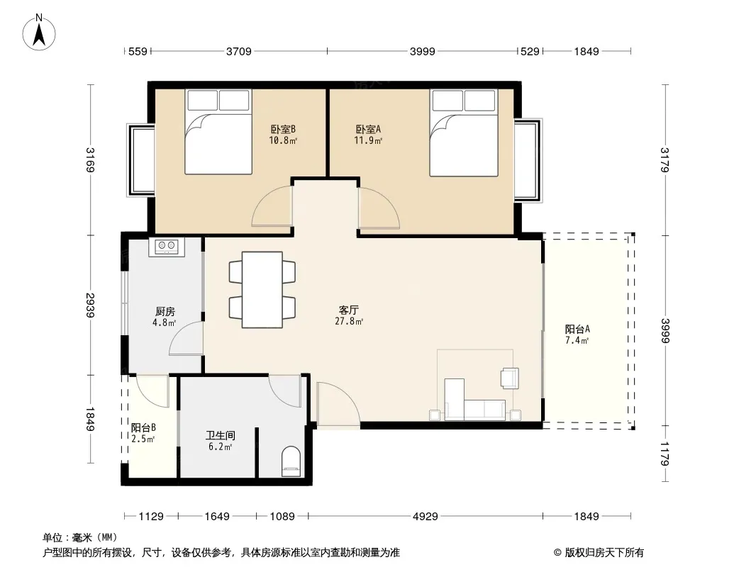户型齐全,主打明卫,客厅朝南,双阳台三居