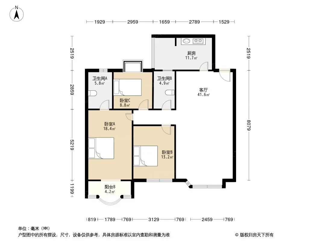 户型齐全,主打户型方正,明卫,客厅朝南,双阳台三居