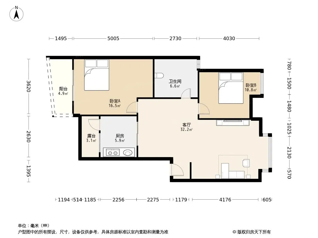 户型齐全,主打明卫,双阳台,主卧朝南三居