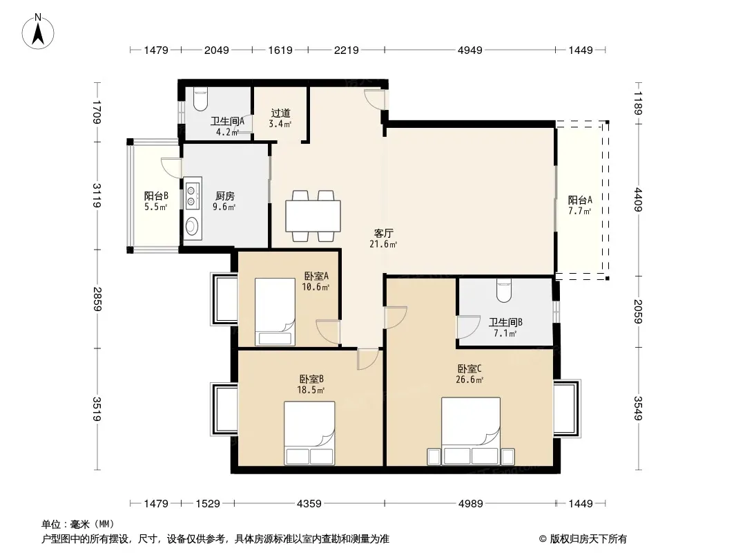 户型齐全,主打明卫三居