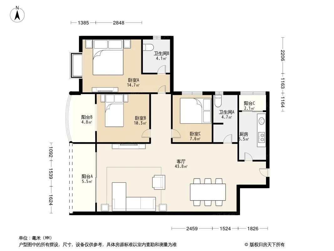 户型齐全,主打客厅朝南三居