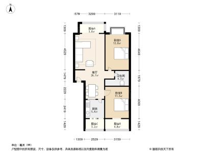户型齐全,主打客厅朝南三居