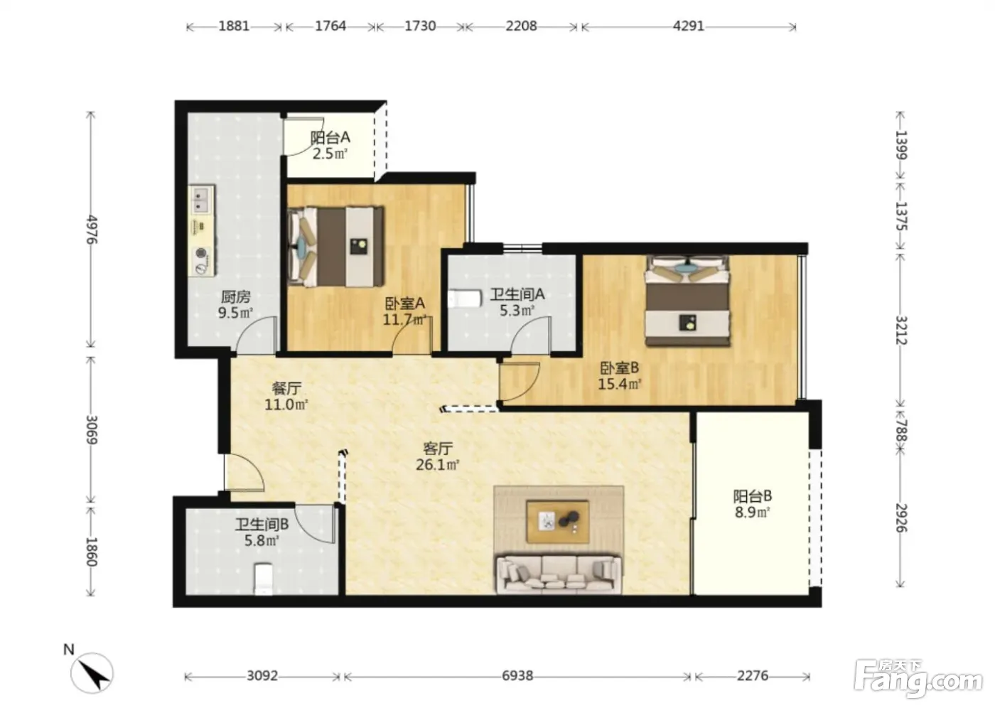 户型齐全,主打明卫,双阳台三居