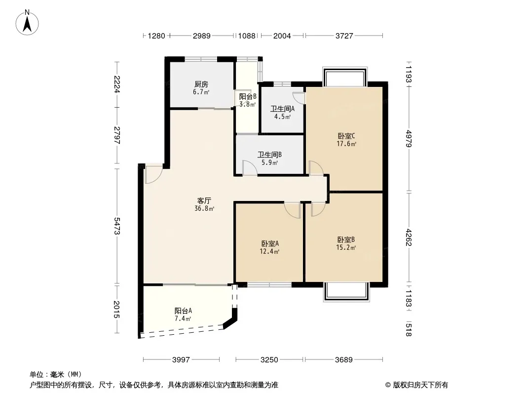天盛驿都锦绣 3室1厅 东南