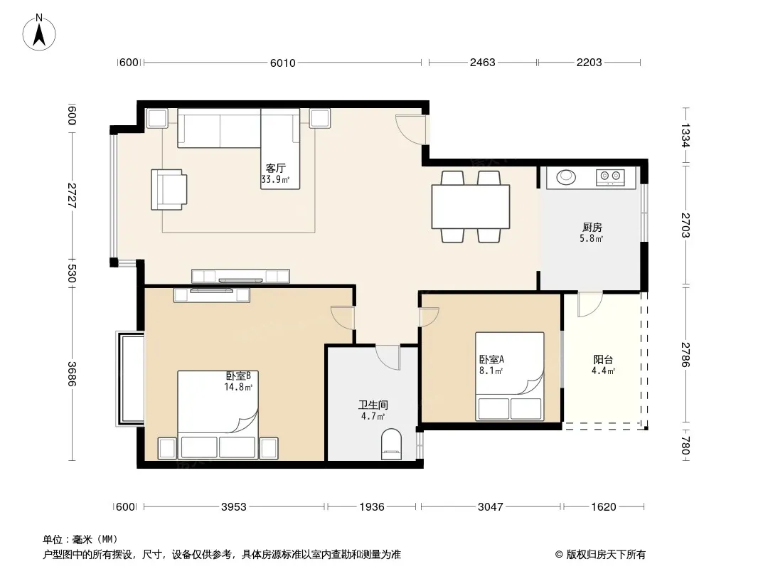 户型齐全,主打户型方正,明卫,明厨,客厅朝南二居