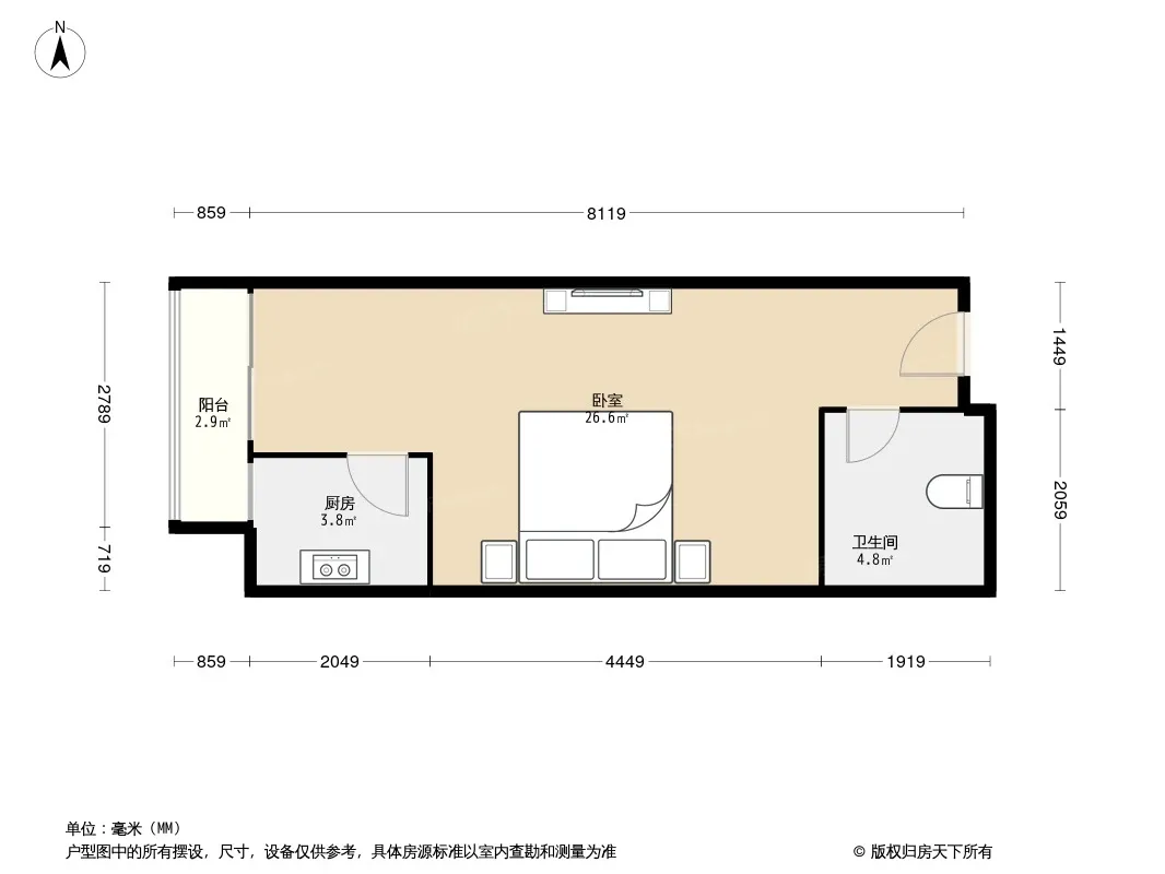 和贵时代巢 1室0厅 南