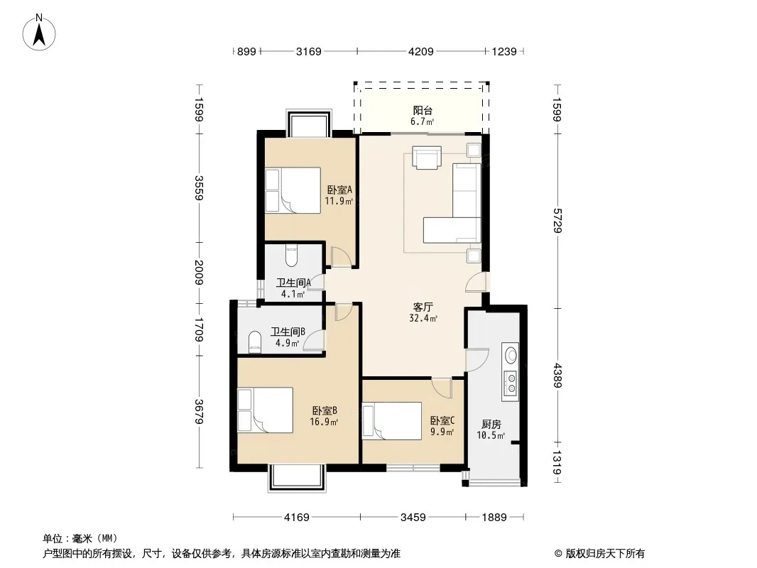 户型齐全,主打明卫,双阳台三居
