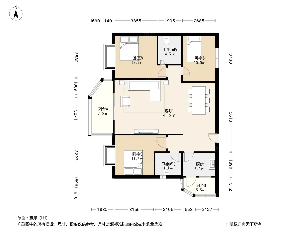 天地晨光丽景 3室1厅 南