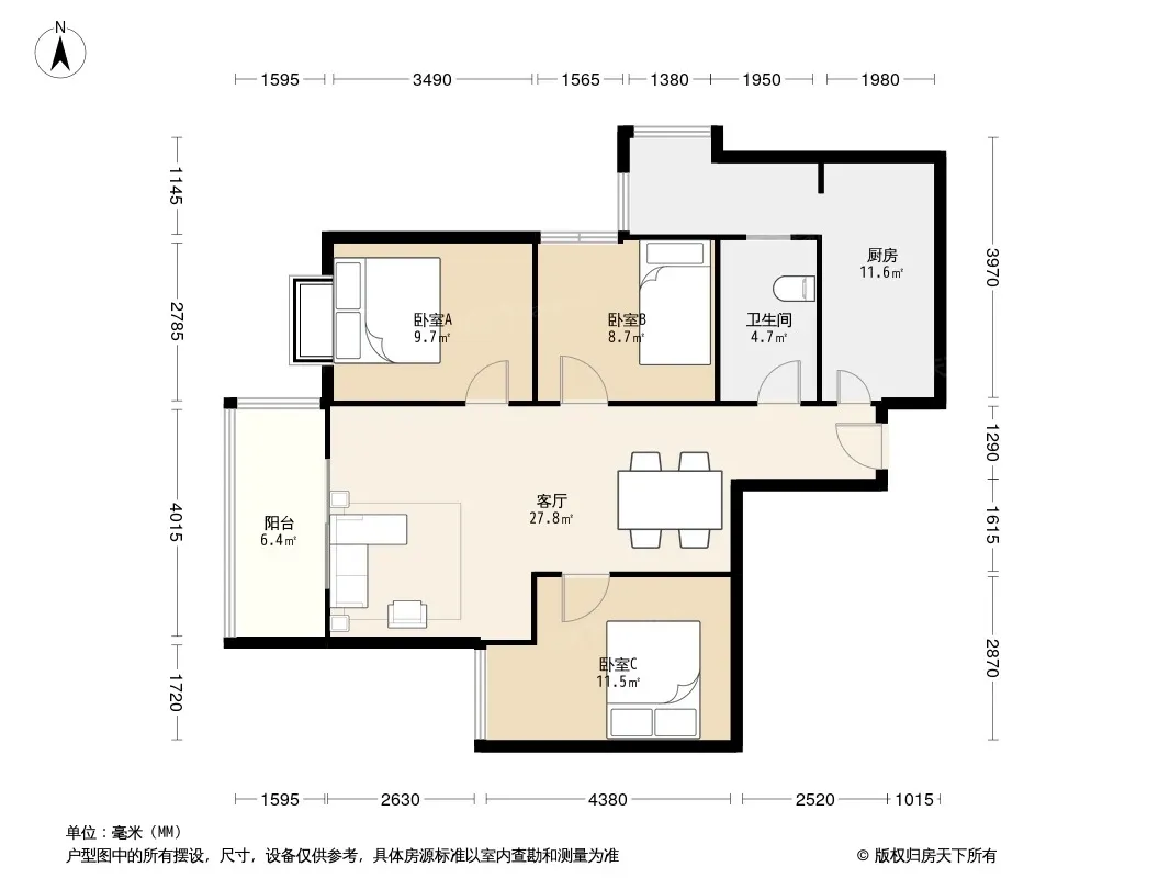 户型齐全,主打客厅朝南二居